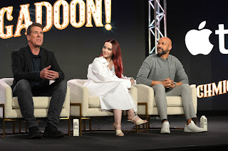 Cinco Paul, Co-creator/Executive Producer, Dove Cameron and Keegan-Michael Key from “Schmigadoon!” Season 2 speak at the Apple TV+ 2023 Winter TCA Tour at The Langham Huntington Pasadena.